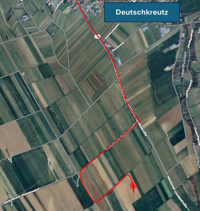 Treffpunkt im Wind/PV-Hybridpark in Deutschkreutz; Koordinaten (f. Google Maps) : 47°34’29.2″N 16°36’48.7″E